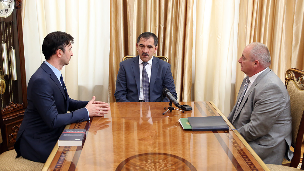 21:12 Юнус-Бек Евкуров принял в рабочем кабинете доктора медицины Хамзата Бекова и вице-премьера Аюпа Оздоева |